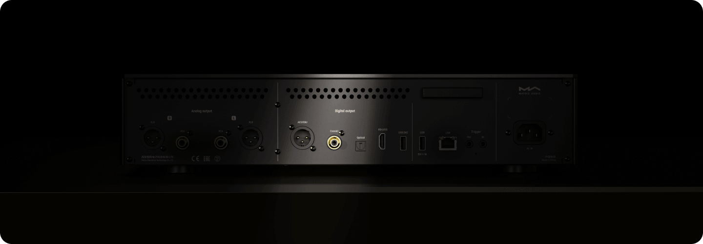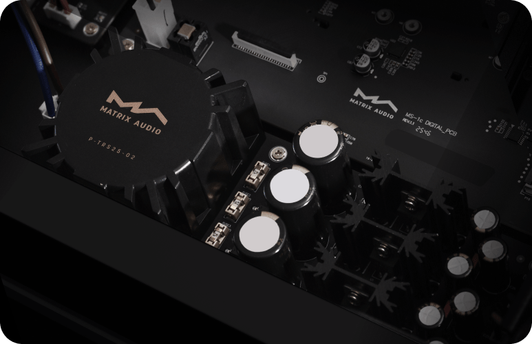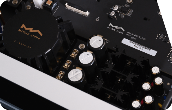 Фирменная архитектура цифрового звука высокого разрешения воплощает философию Matrix Audio, вдохновлённую аналоговыми технологиями. В аналоговом каскаде используются популярные шведские специализированные трансформаторы для аудио LUNDAHL. Они обеспечивают тёплый, плавный и насыщенный звук. Результатом стало богатое деталями и не утомляющее слушателя звучание.