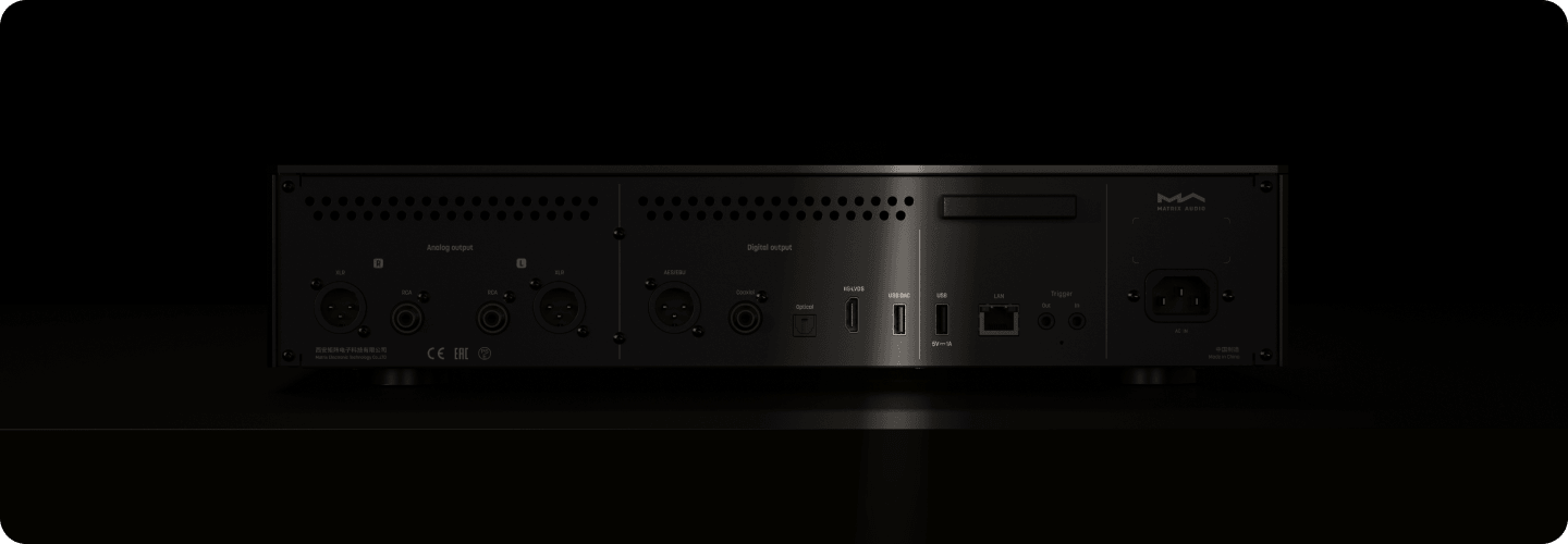 MS-1c оснащён аналоговыми и цифровыми выходами. Благодаря высококачественному встроенному цифро-аналоговому преобразователю, он обеспечивает точную детализацию и тёплое мелодичное звучание. Возможность подключения внешнего ЦАП позволяет добиться большей гибкости при подборе музыкальной системы. Это идеальный выбор для начинающих аудиофилов, дающий возможность последовательно совершенствовать цифровые источники в системе. Но MS-1c прекрасно подойдёт и продвинутым пользователям, желающим обновить свою систему или попробовать что-то помимо традиционных CD.