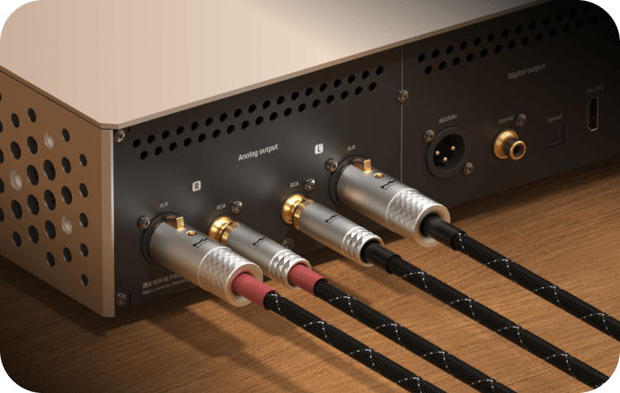 Оптический, коаксиальный и AES/EBU выходы обеспечивают бесшовную совместимость с традиционными ЦАП и гибкое расширение системы в различных конфигурациях.