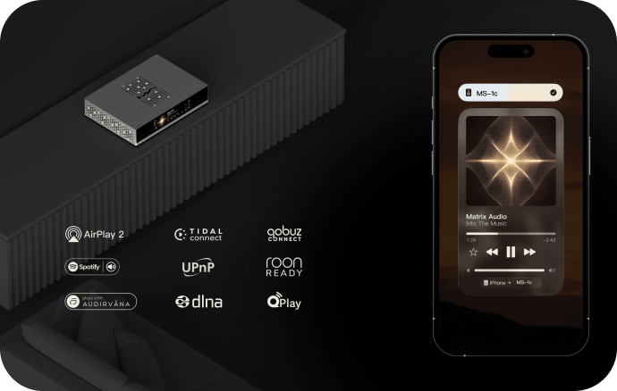 Превосходное звучание MS-1c гармонично дополняет изысканный дизайн. Корпус из алюминия, обработанного на станке с ЧПУ, полностью соответствует фирменной эстетике Matrix Audio. Самое внимательное отношение как к качеству звука, так и ко внешнему виду аппарата отражает стремление создателей MS-1c к аутентичному выражению музыки.
